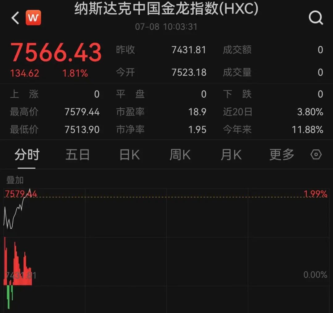 值得注意的是,晚間中概股集體高開高走,其中,億鵬能源漲逾16%,大全新能源漲近10%,老虎證券、新東方等漲幅居前。納斯達克中國金龍指數(shù)則漲逾1%。