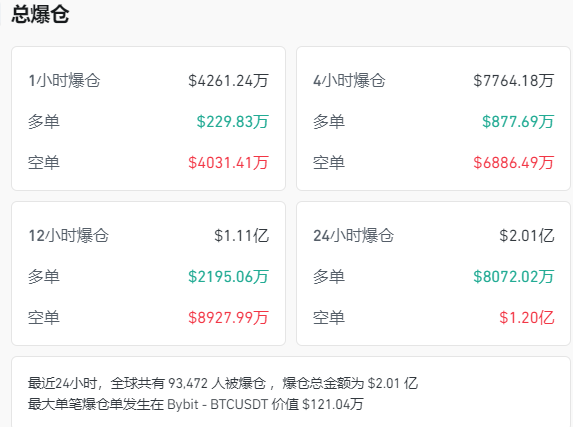 Coinglass數(shù)據(jù)顯示,過去24小時內(nèi),比特幣共有超9萬人爆倉。