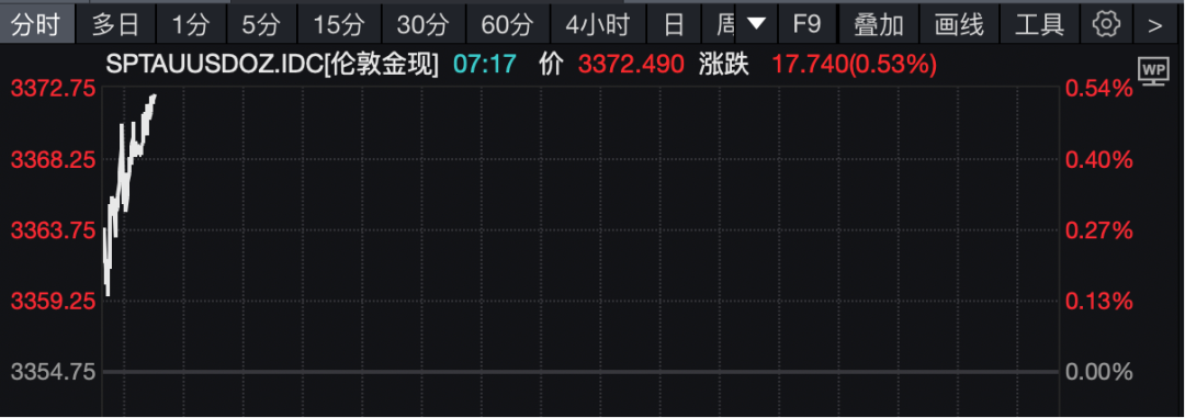 7月14日周一,黃金高開(kāi)高走。截至發(fā)稿,倫敦金現(xiàn)最新報(bào)3372.49美元/盎司,漲幅為0.53%。